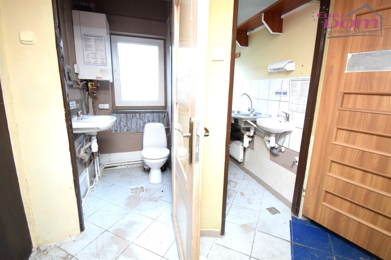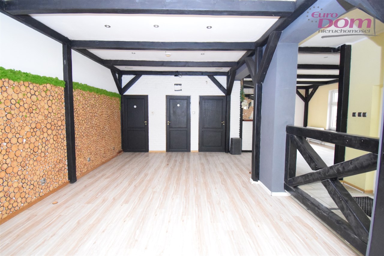 Lokal składa się z dużej sali głównej, baru, zaplecza kuchennego, dwóch łazienek + łazienka z wc na zapleczu. Lokal usytuowany na działce o powierzchni 300m2 w kształcie kwadratu. Lokal wymaga odświeżenia lub remontu w zależności od potrzeb i przeznaczenia lokalu. Duże okna witrynowe, wejście bezpośrednio z ulicy. Możliwość reklamy na ogrodzeniu, dachu, oknach. Ogrzewanie gazowe - piec dwufunkcyjny. Dach po remoncie (papa 5mm). Miejsca parkingowe przed lokalem. Przed jak i za lokalem ogródek. Nieruchomość nadaje się pod każdą działalność (lokal gastronomiczny, biuro, gabinety lekarskie).